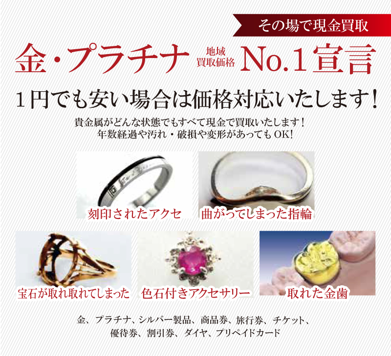 金、プラチナ、シルバー製品、商品券、旅行券、チケット、優待券、割引券、ダイヤ、古銭、プリペイドカード