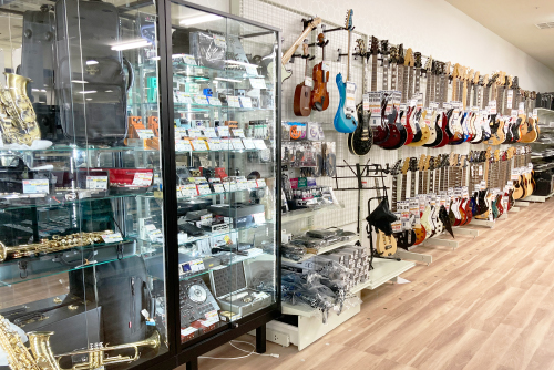 ギター、ベース、エフェクター、ギターアンプ、ドラム、キーボード、電子ピアノ、管楽噐、ミキサー、DJ機器、マイク、P/A機器