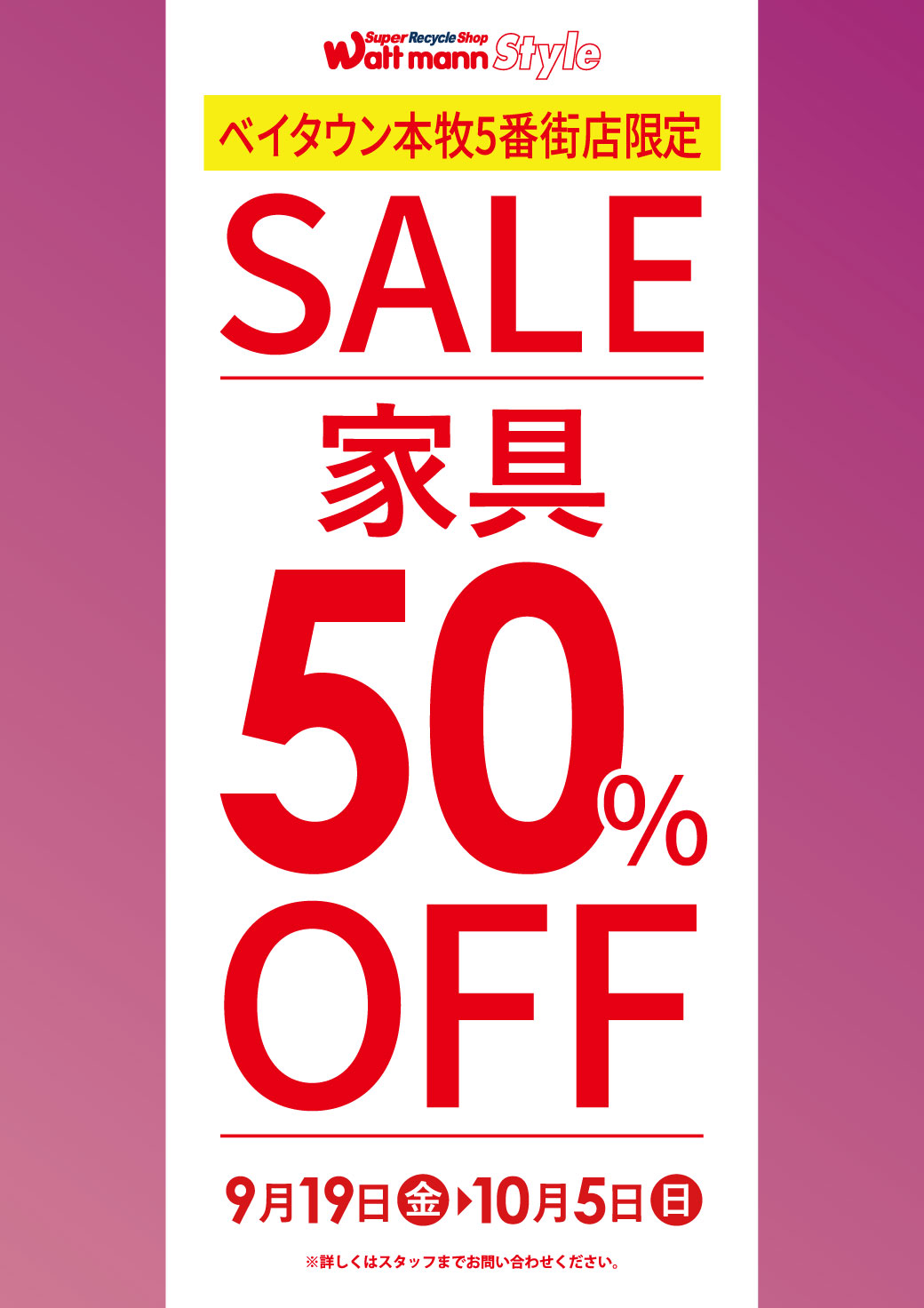 【ベイタウン本牧5番街店 限定セール】9/19~ 家具 50%OFF