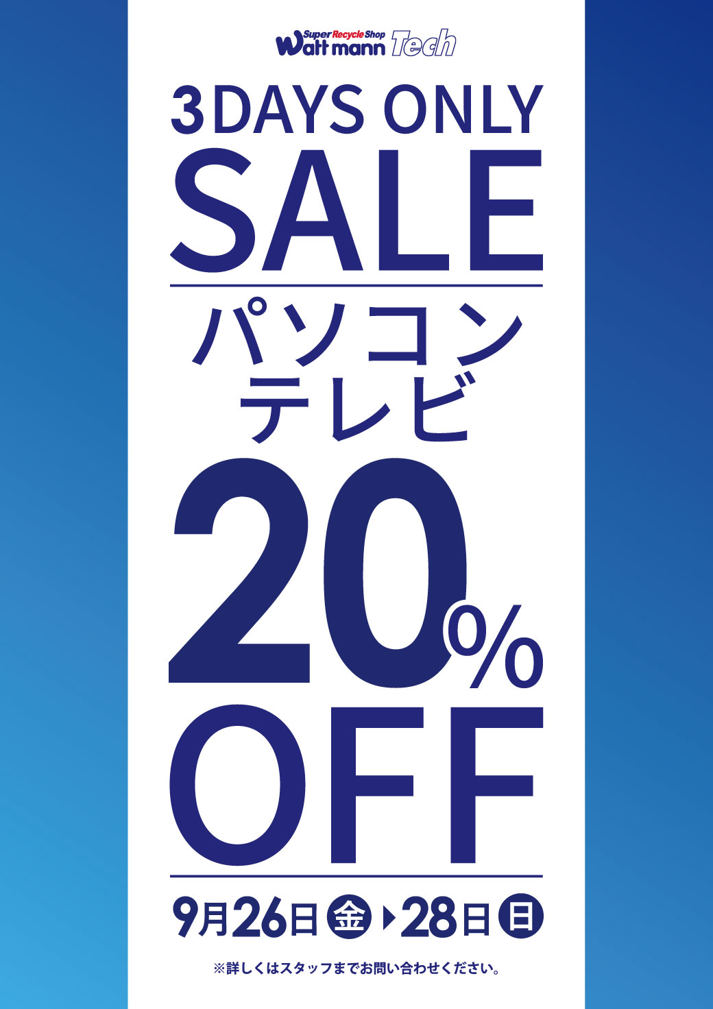 【SALE テック店舗】9/26~ パソコン・テレビ 20%OFF