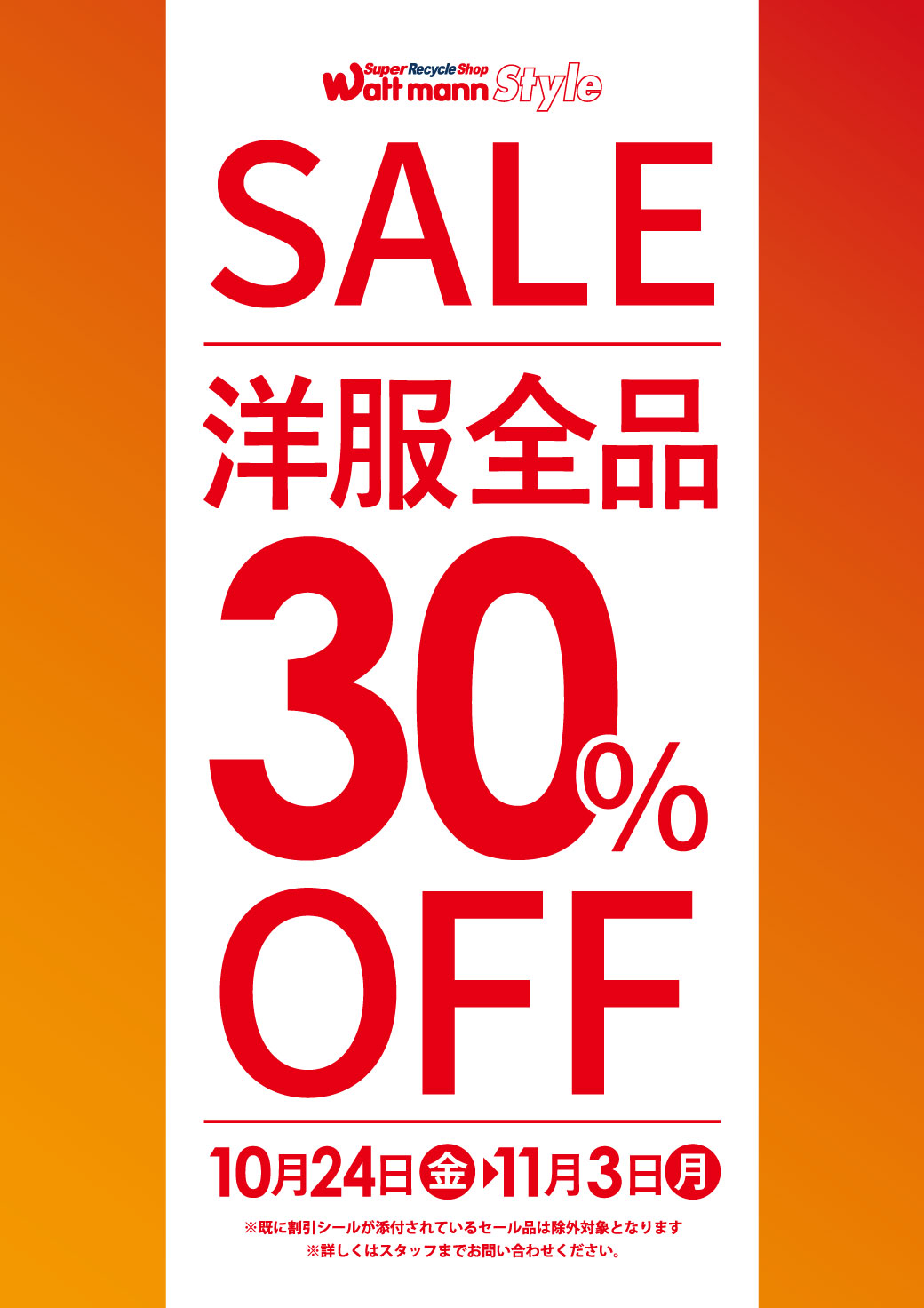 【SALE スタイル店舗】10/24~ 洋服 30%OFF