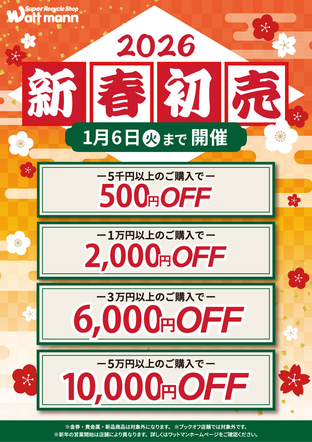 ワットマン店舗では1月5日(日)まで今年も初売イベントを開催します。