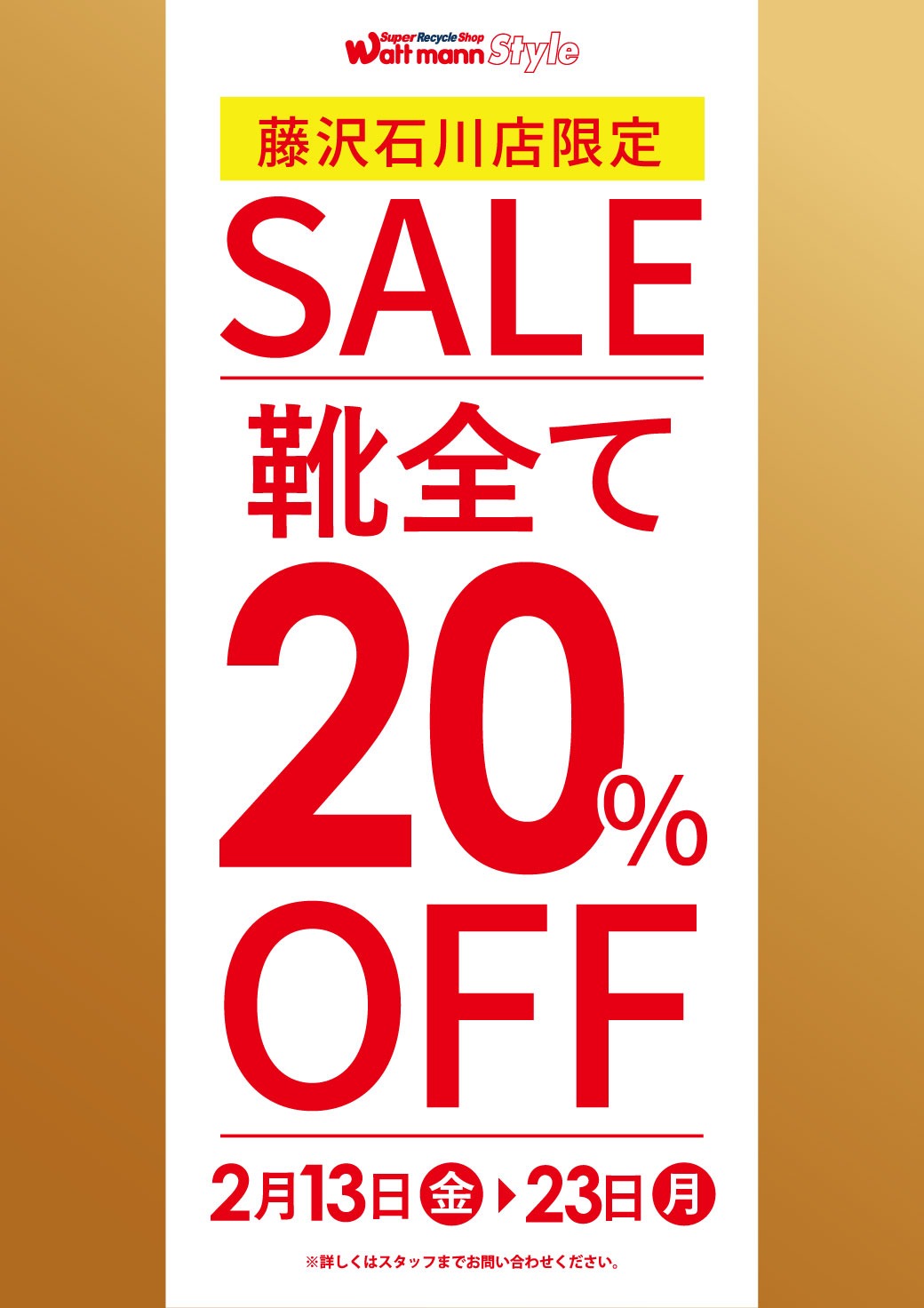 2/13 藤沢石川店限定!靴20%OFFセール!!