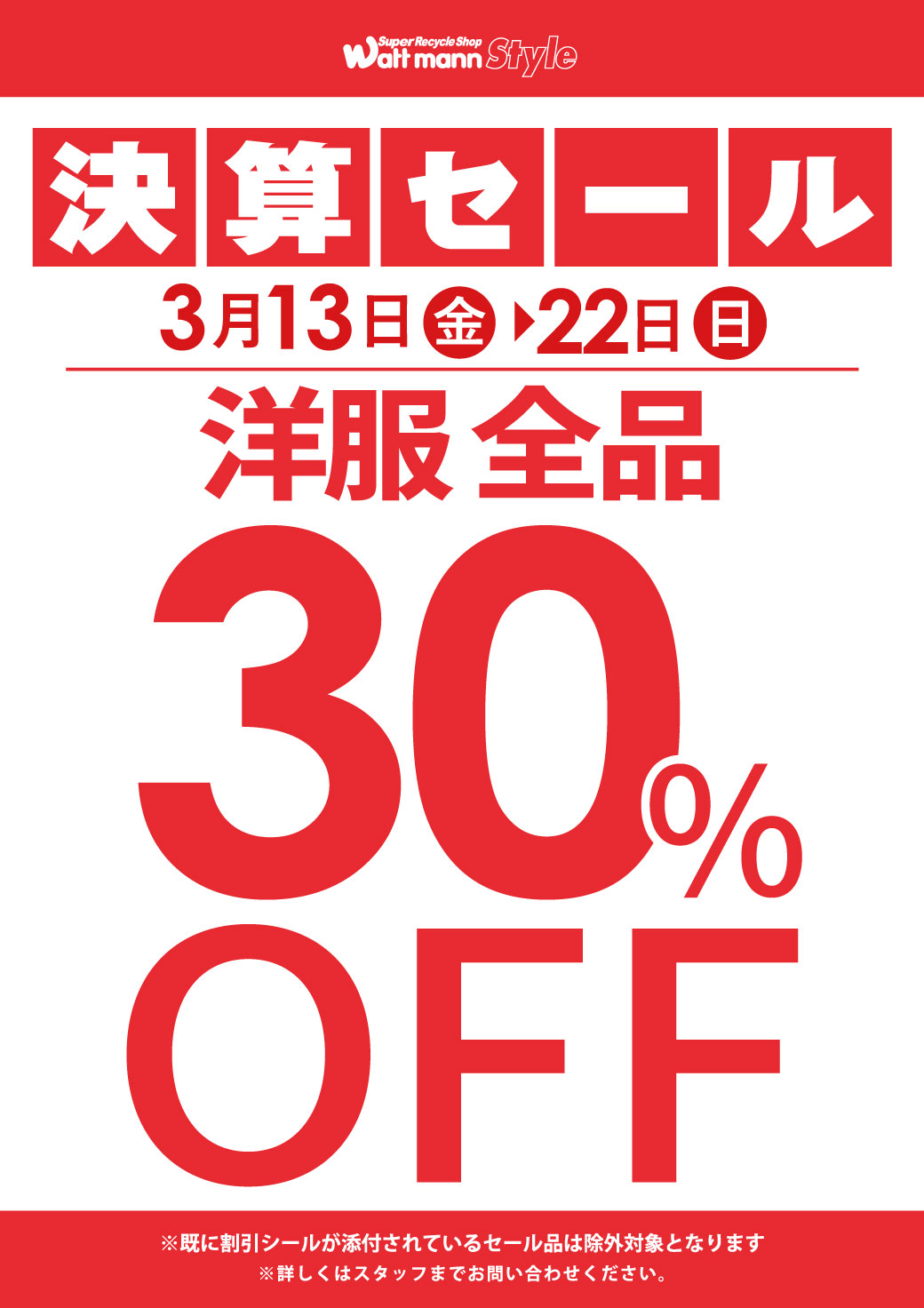 2026/3/13~ 決算セール開催!